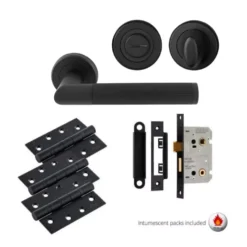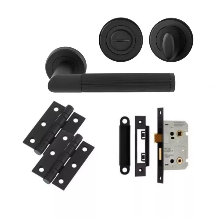 Matt Black Trend Lines Lever Handle Door Kit – Bathroom