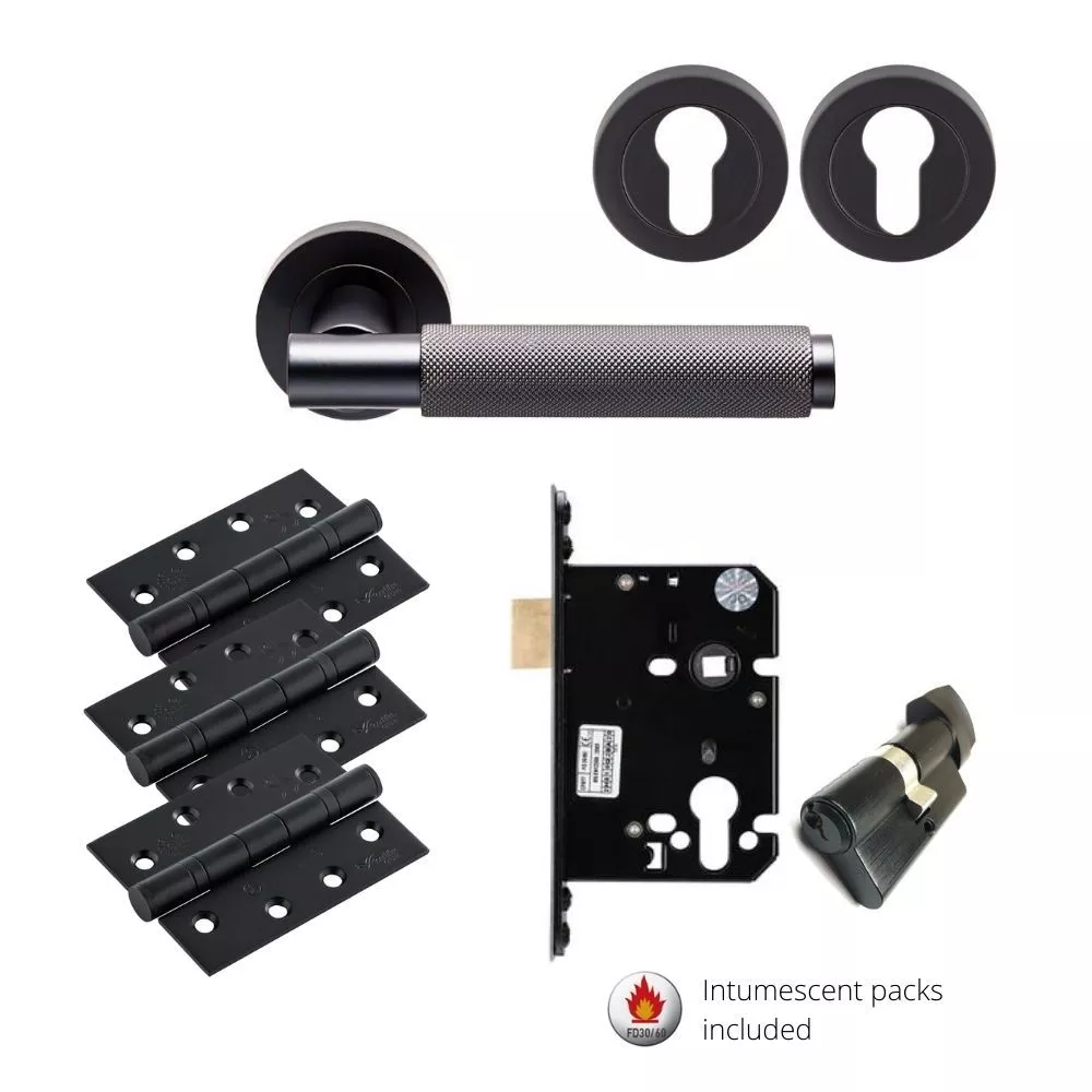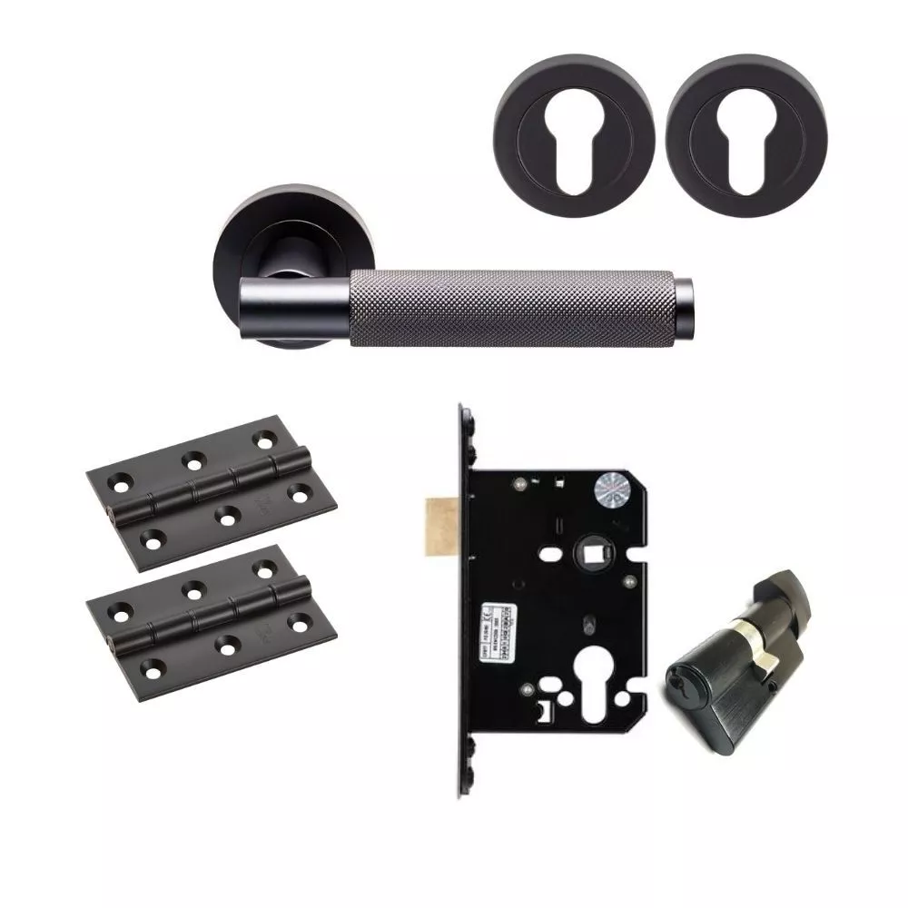 Carlisle Brass Matt Black Varese Knurled Lever Handle Euro Lock Pack – EUL050MBELKP