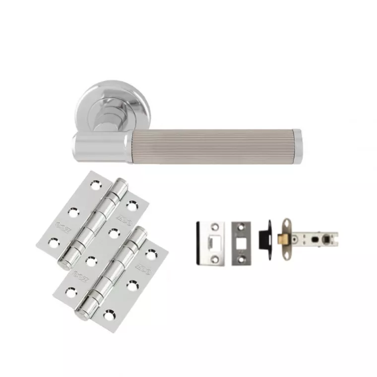 Polished Chrome and Satin Nickel Image Lines Lever Handle Door Kit – Latch