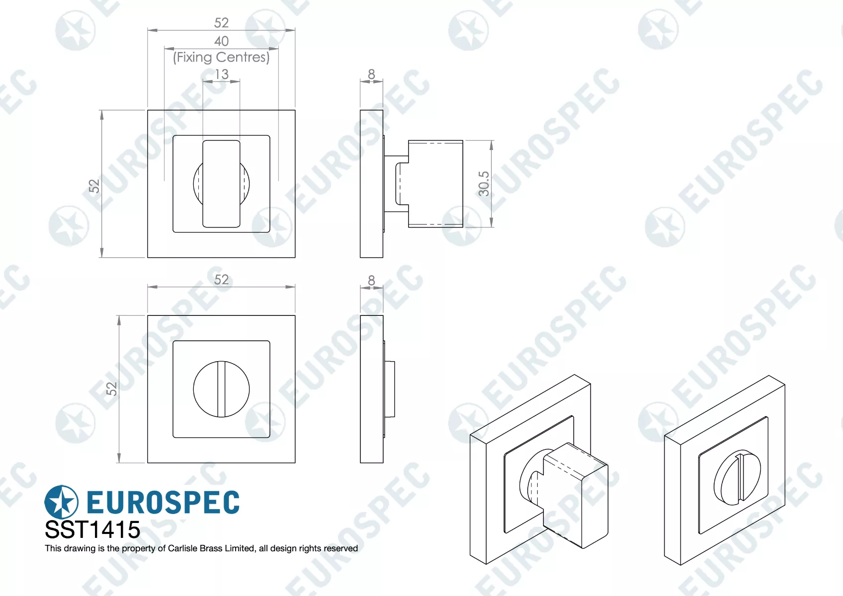 Satin Stainless Steel Square Thumbturn Snib & Release | SST1415SSS