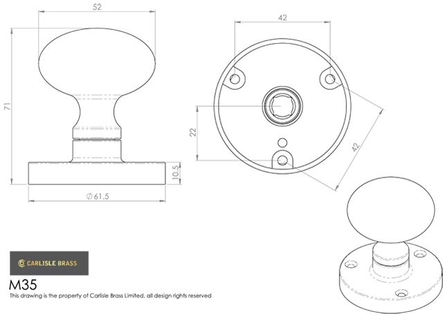 Set Manital Satin Brass Victorian Mushroom Mortice Knob | M35SB