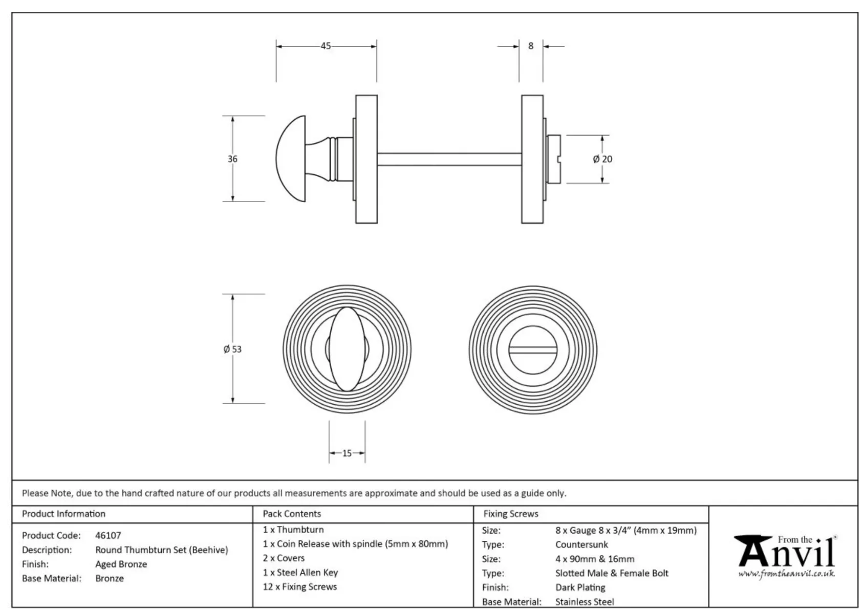 From the Anvil Aged Bronze Bathroom Thumbturn & Snib Release (Beehive) | 46107