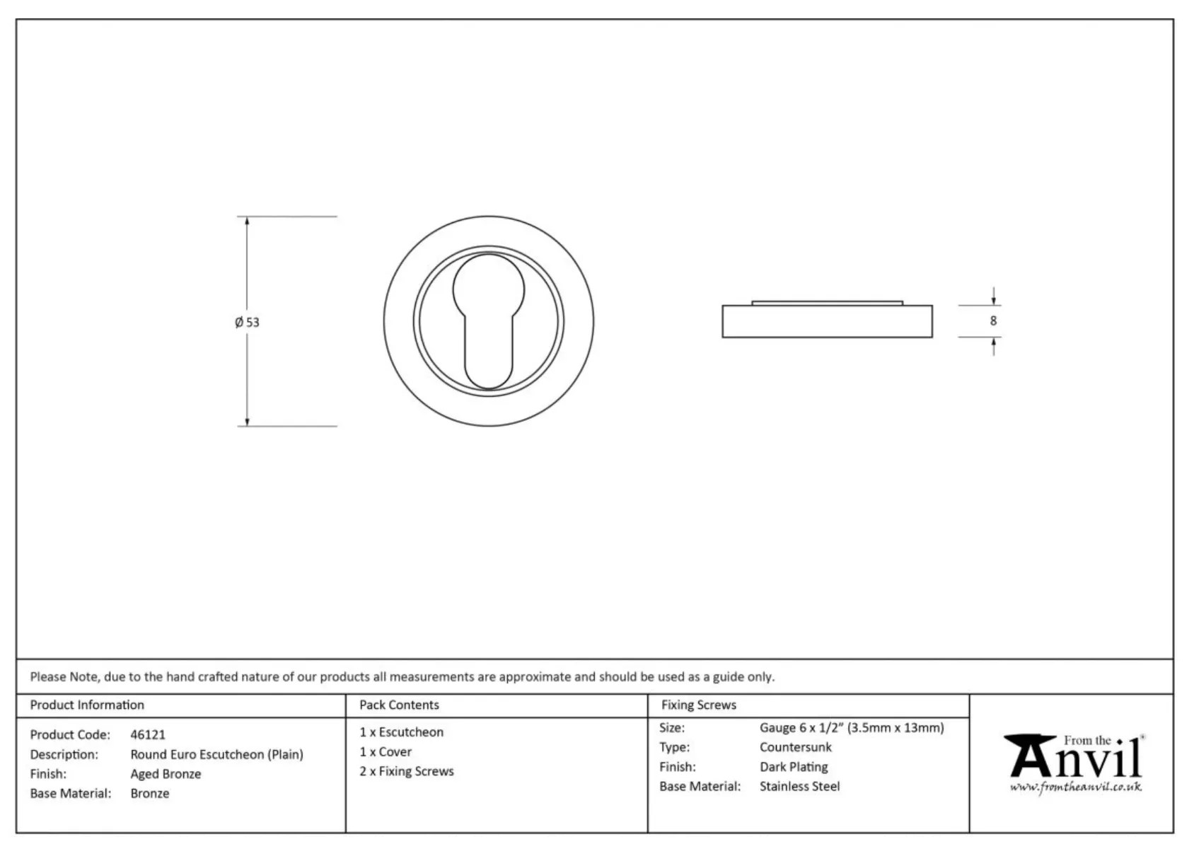 From the Anvil Aged Bronze Plain Rose Euro Escutcheon | 46121