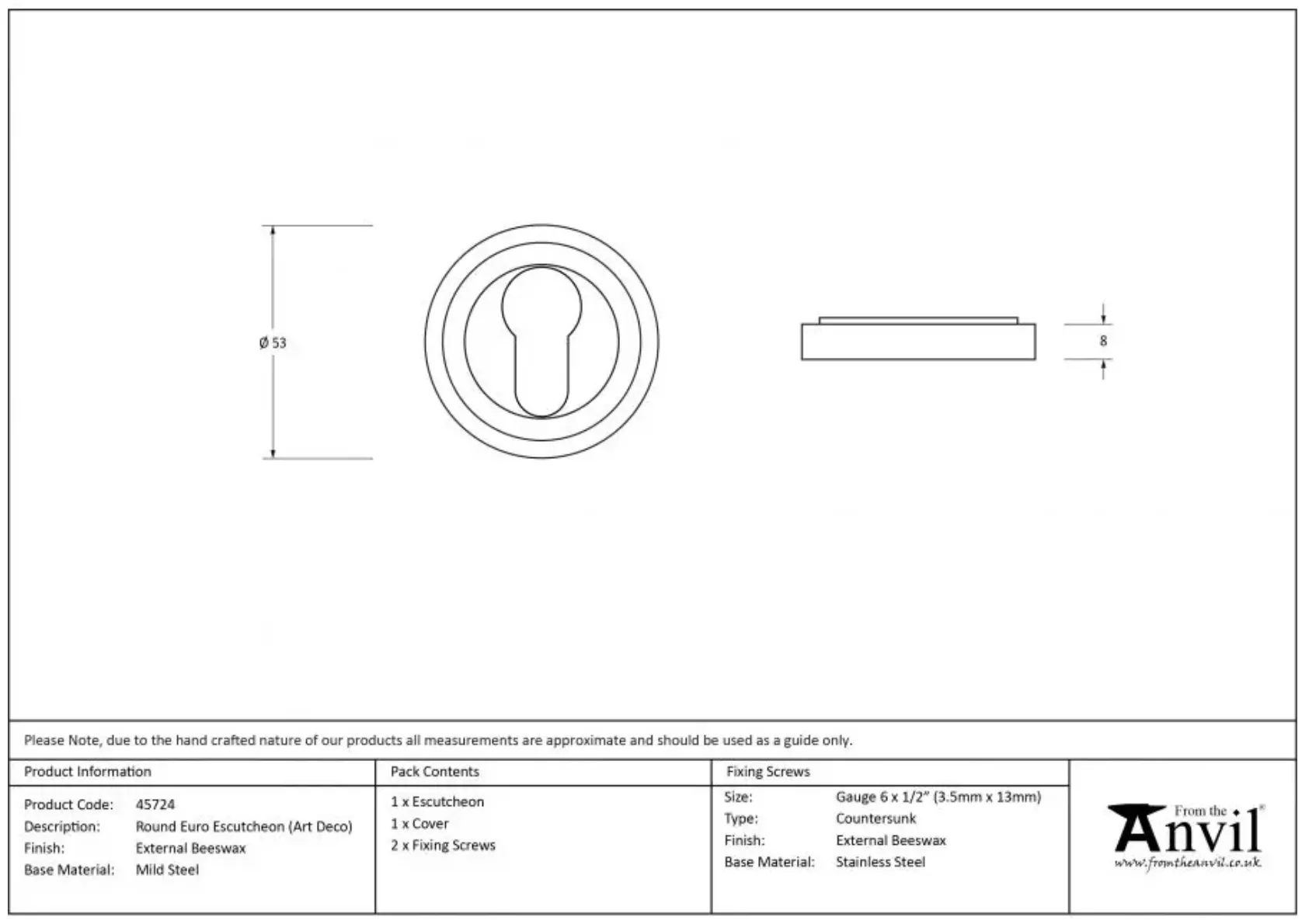 From the Anvil External Beeswax Euro Round Art Deco Rose Escutcheon | 45724