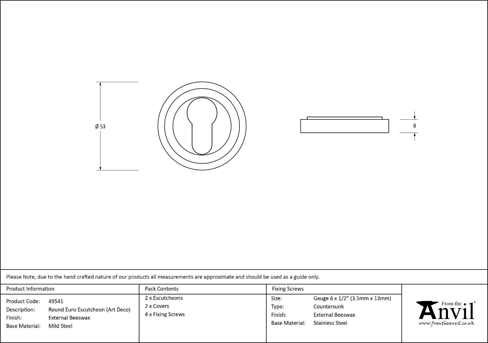 From the Anvil Matt Black Euro Round Art Deco Rose Escutcheon | 49541