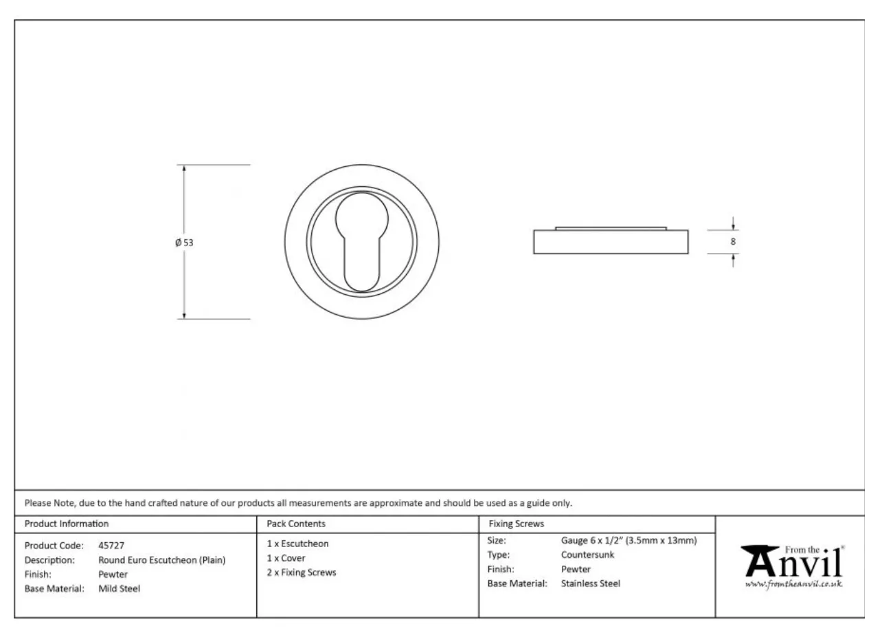 From the Anvil Pewter Euro Round Plain Rose Escutcheon | 45727
