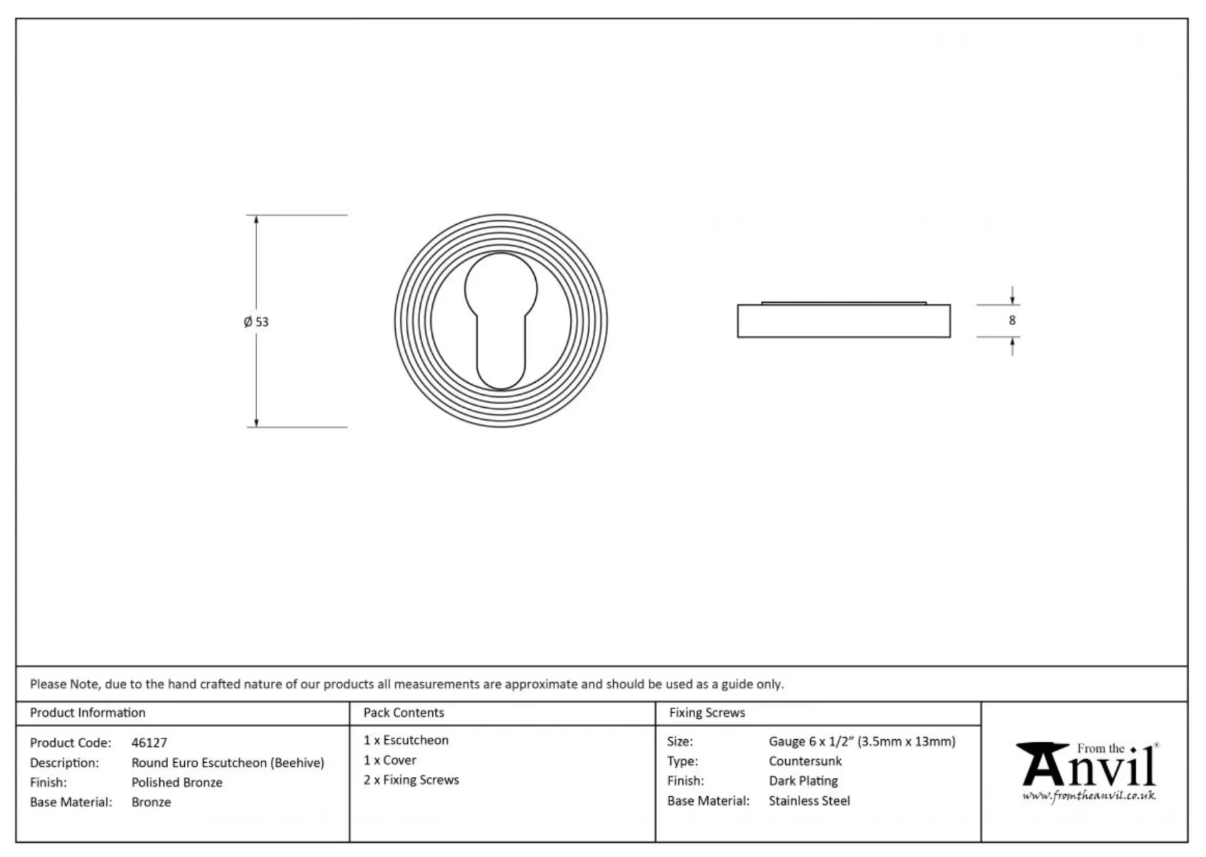 From the Anvil Polished Bronze Beehive Rose Euro Escutcheon | 46127