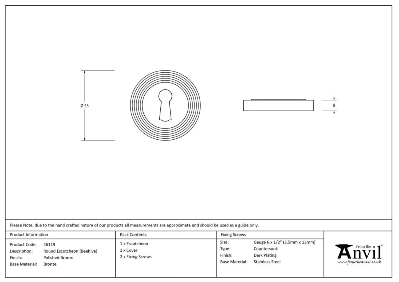| Brand Info | From the Anvil brand is known for; 90% of their products are hand forged from steel; Unlike the majority of ironmongery, their products are individually heated and shaped by hand on the anvil, giving them extra strength and durability; This process also enables us to achieve unique detail in their designs; ideal for traditional property, historical renovations, cottages. |