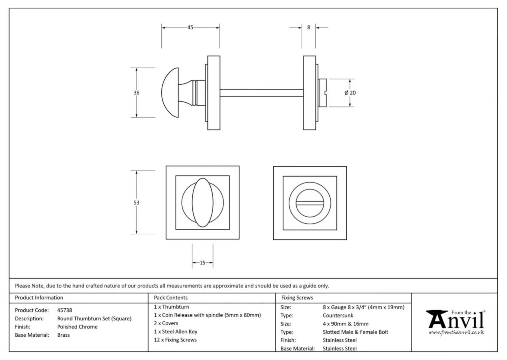 - Fixing Plate: 53mm x 53mm x 8mm