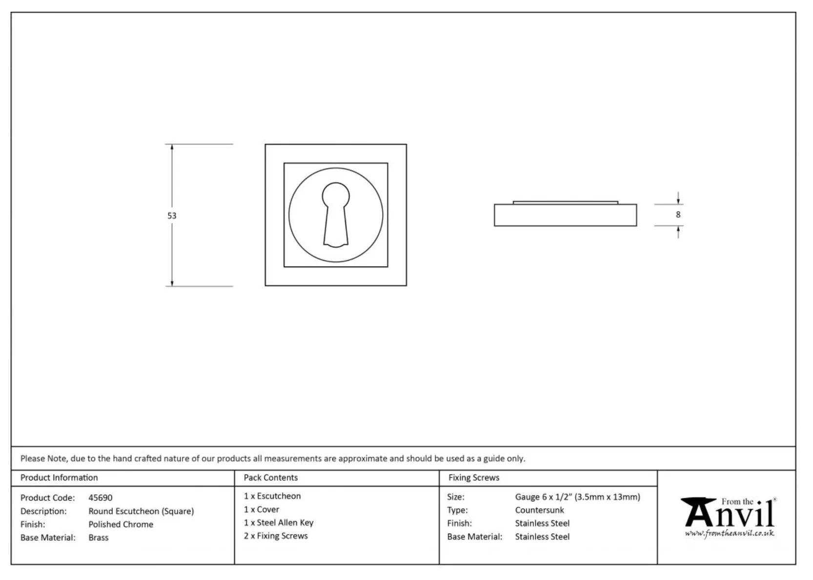 From the Anvil Polished Chrome Square Rose Standard Escutcheon | 45690