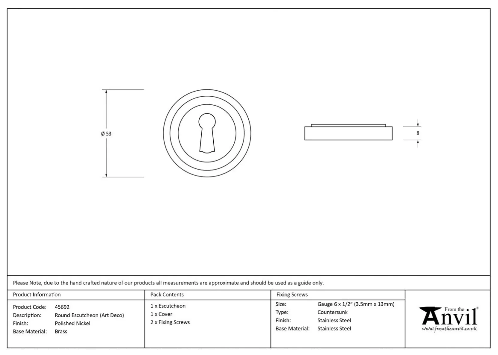 From the Anvil Polished Nickel Art Deco Rose Standard Escutcheon | 45692