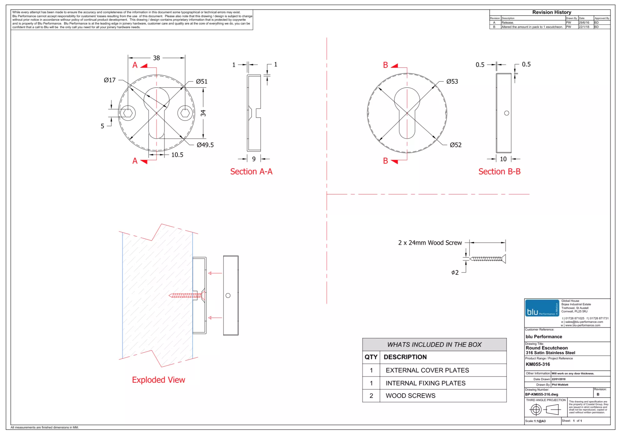 PVD Satin Brass Marine 316 Round Euro Escutcheon | KM055 PSB