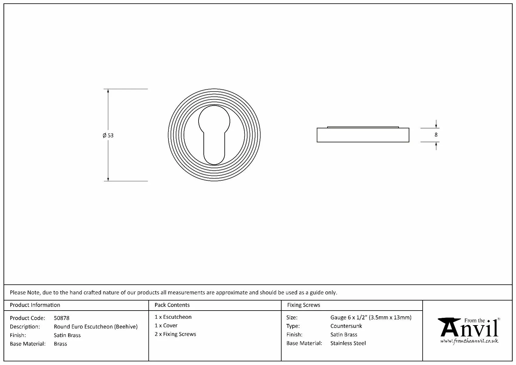 Satin Brass Round Euro Escutcheon (Beehive) | 50878