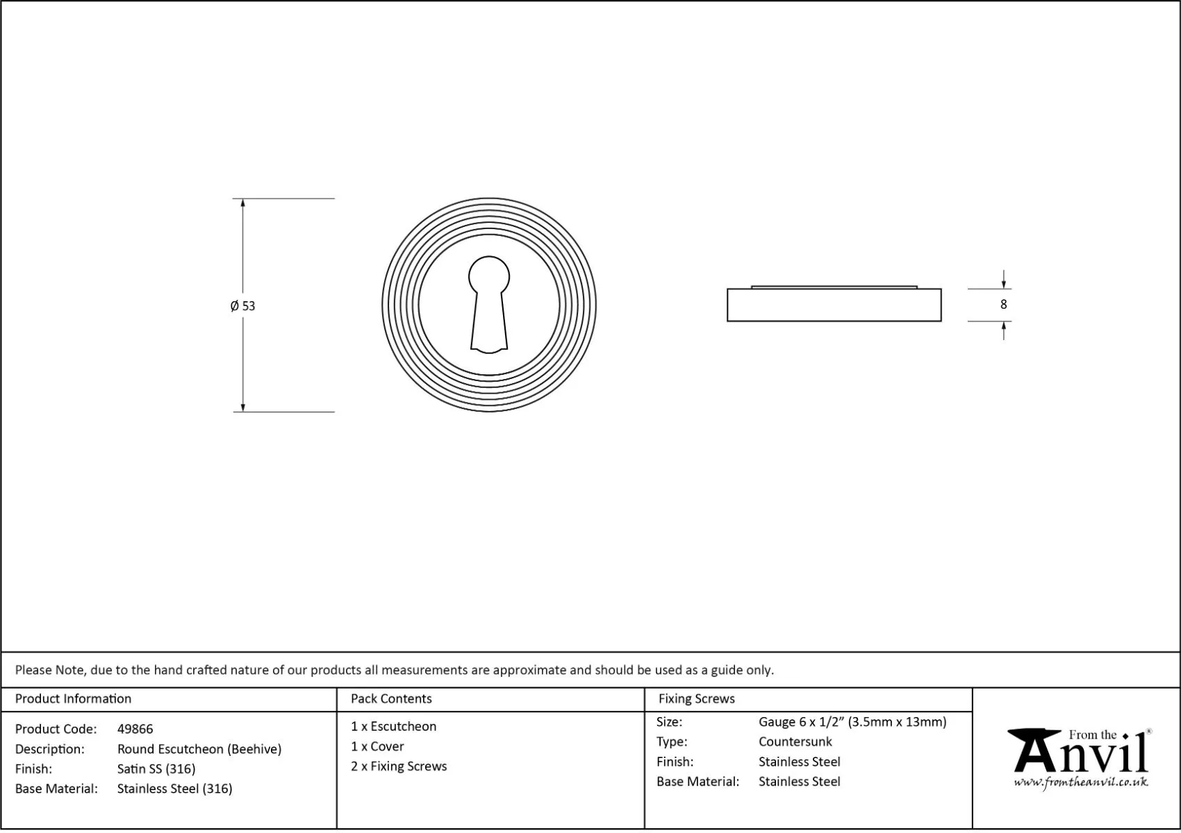 From the Anvil Satin Stainless Steel Marine (316) Round Standard Keyhole Escutcheon | 49866