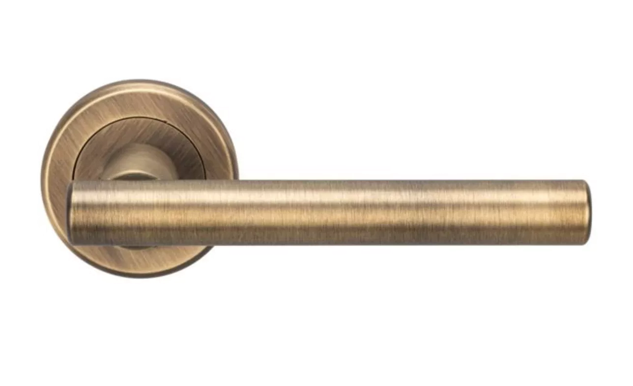 Set Carlisle Antique Brass Serozzetta Philidelphia Lever on round rose | ZIN3121AB