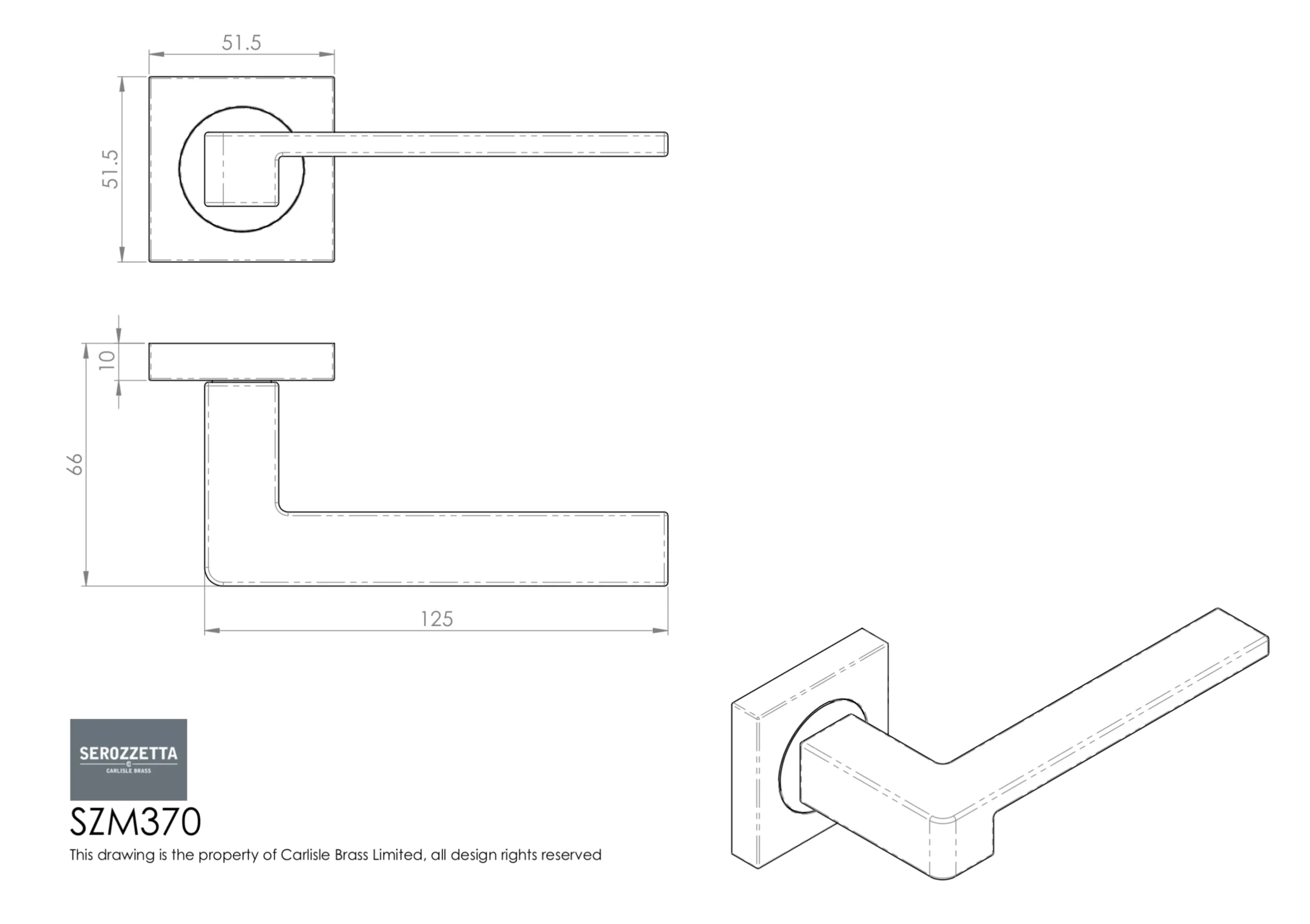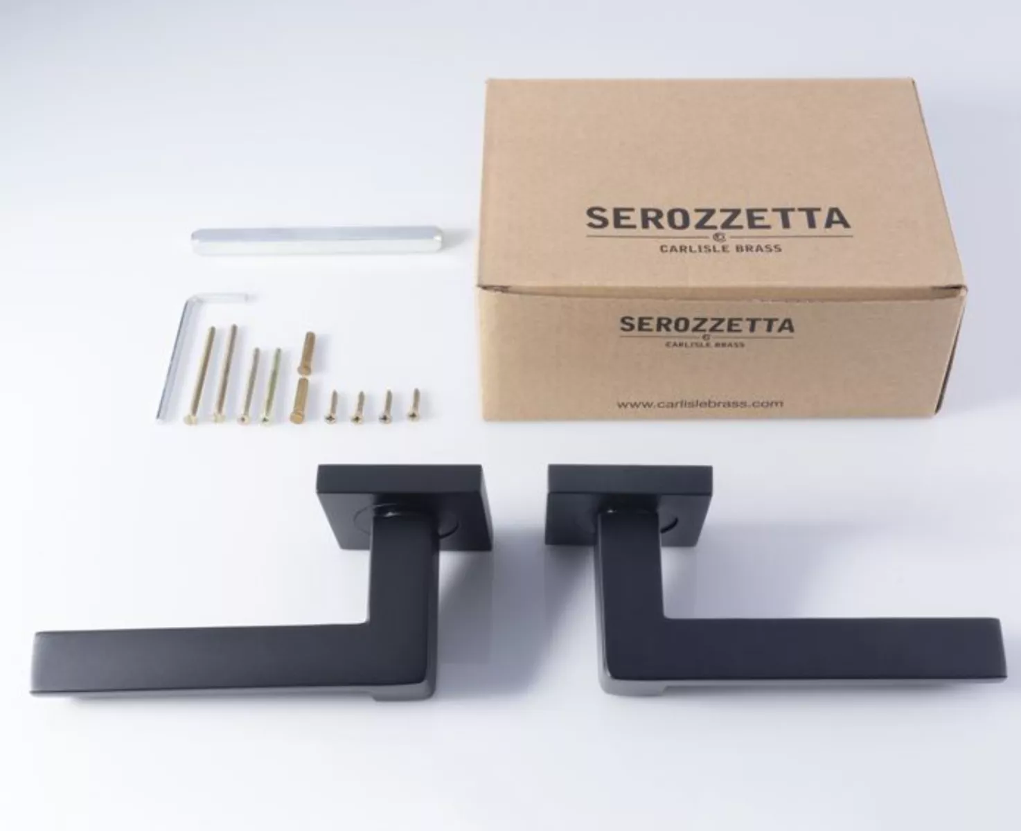 Set Carlisle Brass Matt Black Serozzetta Equi Lever on square rose | SZM370SQMB