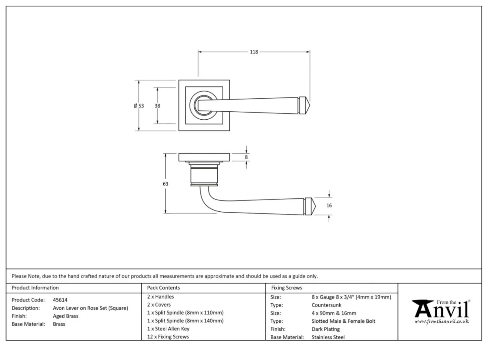 Set From the Anvil Aged Brass Avon Lever on Square rose | 45614