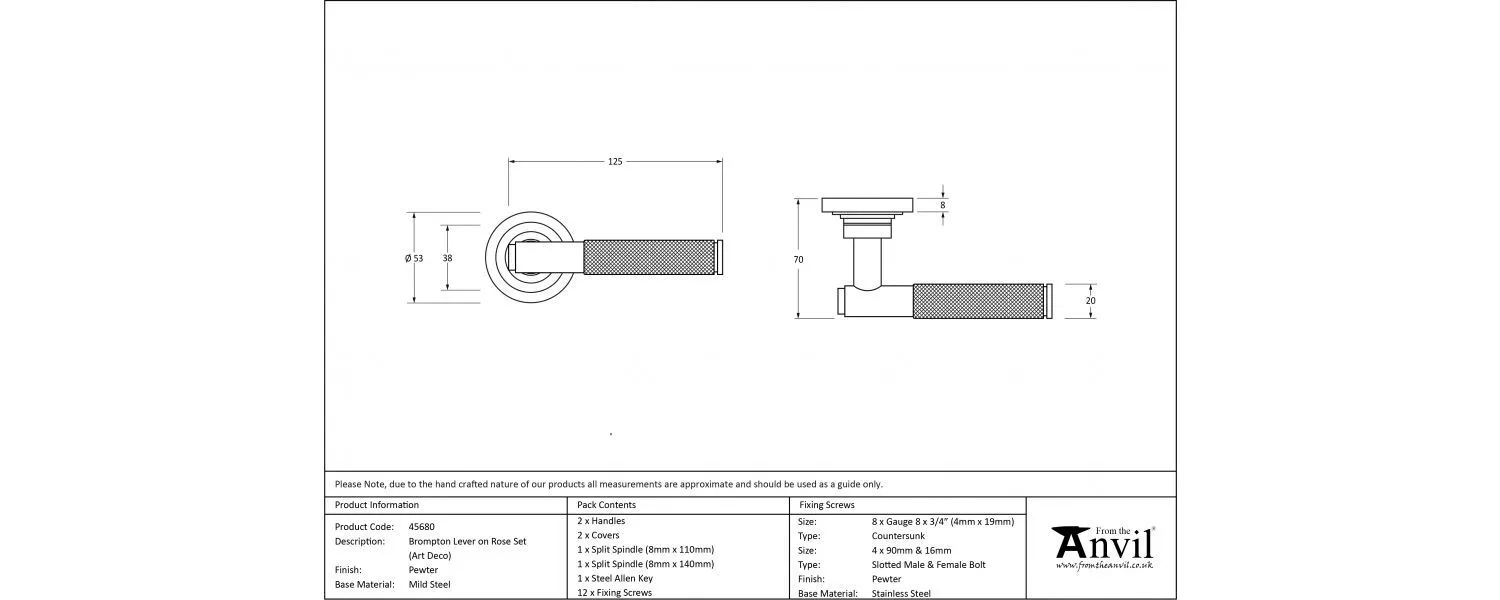 Set From the Anvil Pewter Brompton Lever on Square rose | 45682