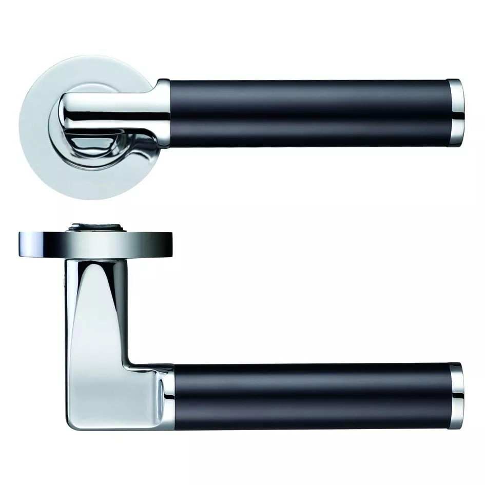 Set Polished Chrome & Black Aluminium Milan Designer Lever on round rose
