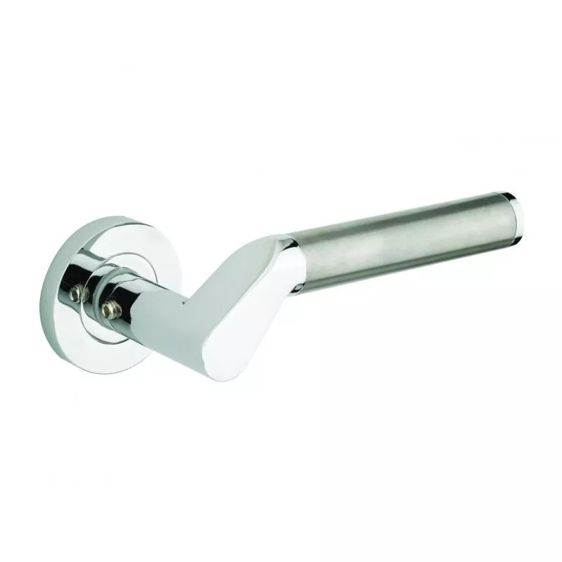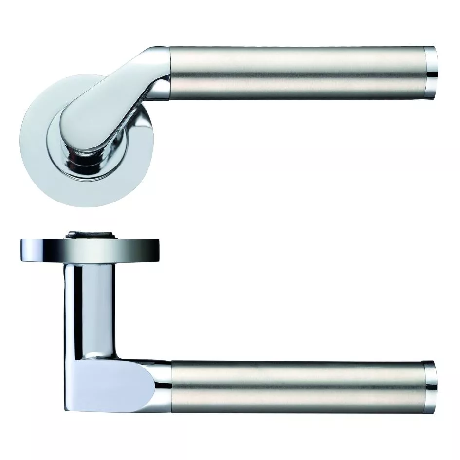 Set Polished Chrome & Satin Stainless Steel Venus Designer Lever on round rose