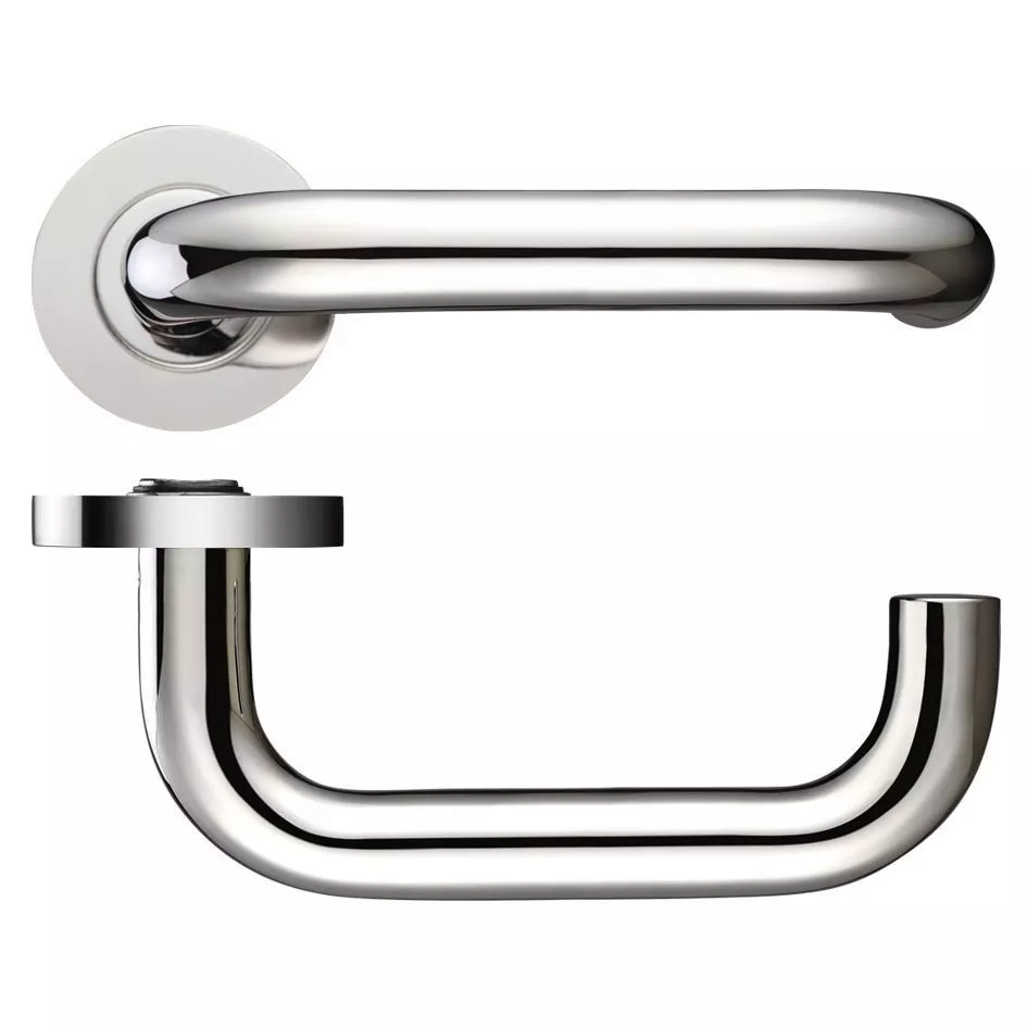 Set Polished Stainless Steel Lever on round rose
